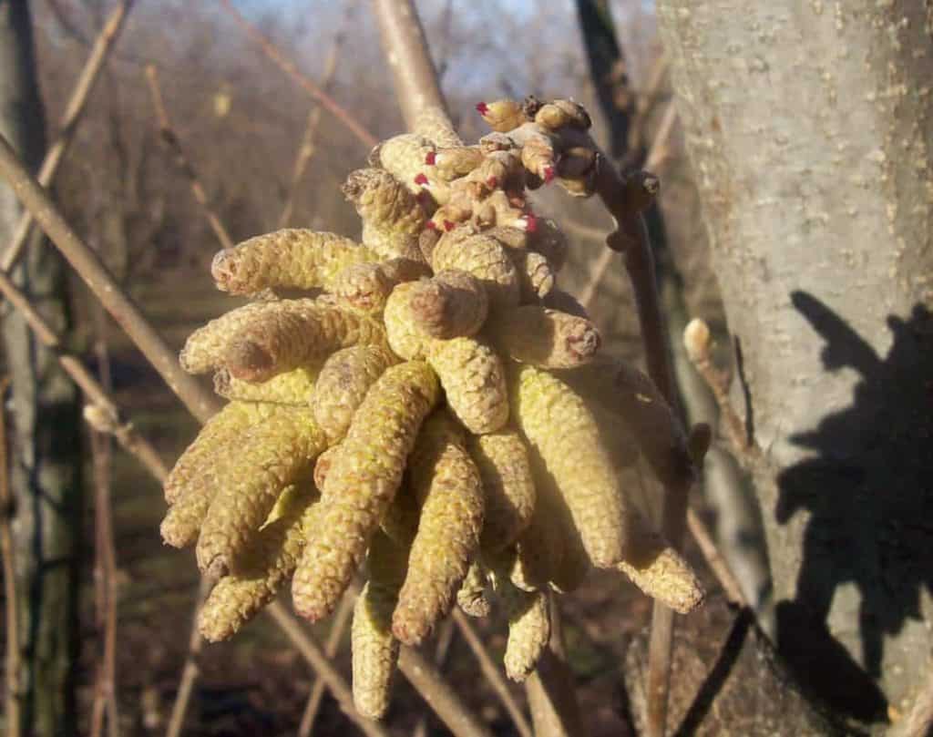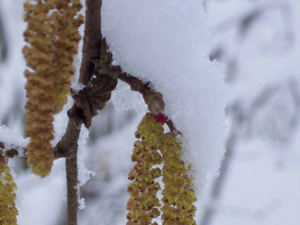 Il nocciolo è una pianta monoica (dotata di fiori maschili e femminili) si impollina grazie al vento ( impollinazione anemofila) che trasporta il polline da un fiore all’altro senza bisogno degli insetti, in questo periodo poco attivi.